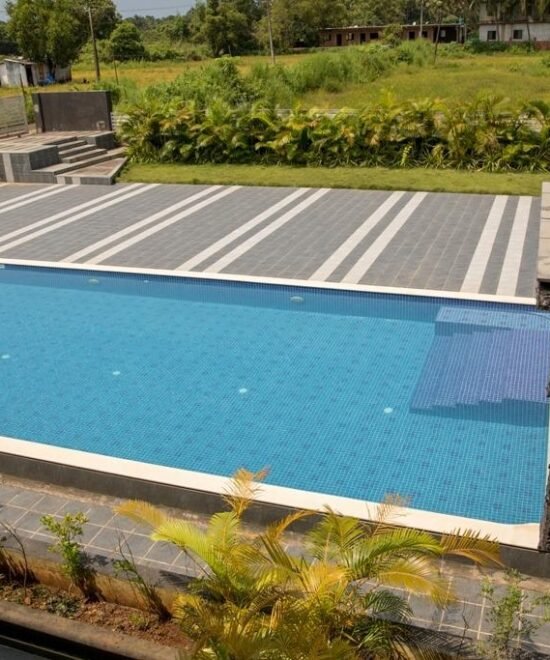 Spacious Private Pool with Open Sit-Out: Enjoy a refreshing dip in the large private pool and relax in the open sit-out area, ideal for sunbathing and socializing.